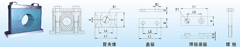 管夾體 | 蓋板 | 焊接底板 | 螺栓 | |||||||||||||