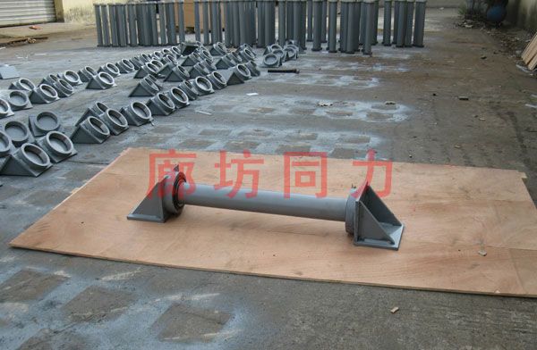 滾動(dòng)支座主要由滾動(dòng)體、單列圓錐滾子軸承、心軸、支承架等部件組成,工作原理是利用單列圓錐子軸承的滾動(dòng)來(lái)減少熱力管道軸向移動(dòng)的摩擦阻力,摩擦系數(shù)<0.04。它的主要特點(diǎn)是將老式的滑動(dòng)摩擦改為滾動(dòng)摩擦,從而大大降低了管道對(duì)固定支架的水平推力,能夠承受管道徑向位移所產(chǎn)生的徑向力。