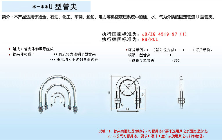 應(yīng)用領(lǐng)域:U型管夾適用于冶金、電力、化工、機械等行業(yè)的管道固定。