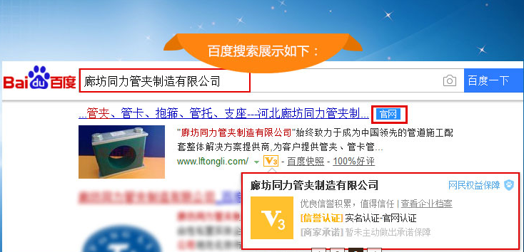 廊坊同力管夾制造有限公司網(wǎng)站順利通過百度信譽官網(wǎng)認證!